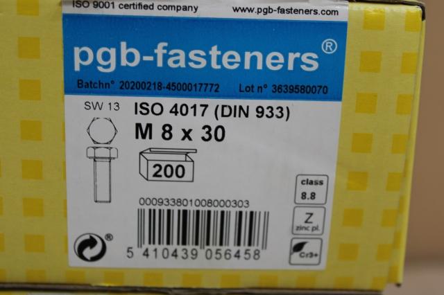 3 x PGBfast Zeskanttapbout 8.8 DIN 933 M 8x30 Zn/200
