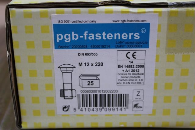 Ongebruikt, PGBfast Houtbout 4.8 DIN 603/555 M12x220 Zn/25