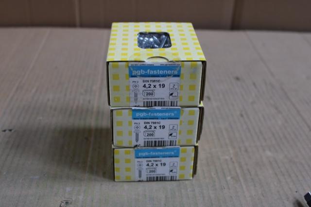 Ongebruikt, 3 x PGBfast Plaatschroef DIN 7981C-H Ø4,20x19 Zn/200