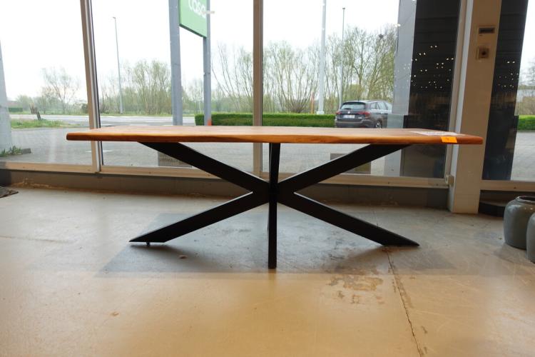 oude teak, vv: metalen spiderpoot, 2200x960x800