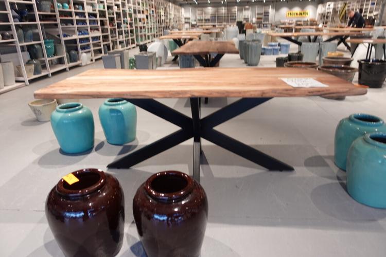 oude teak, vv: metalen spiderpoot, 2200x900x800