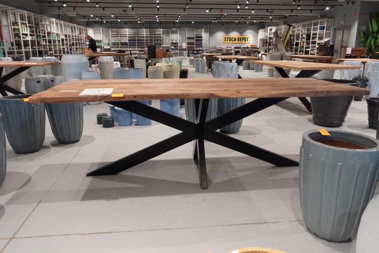 oude teak, vv: metalen spiderpoot, 2400x1000x800