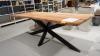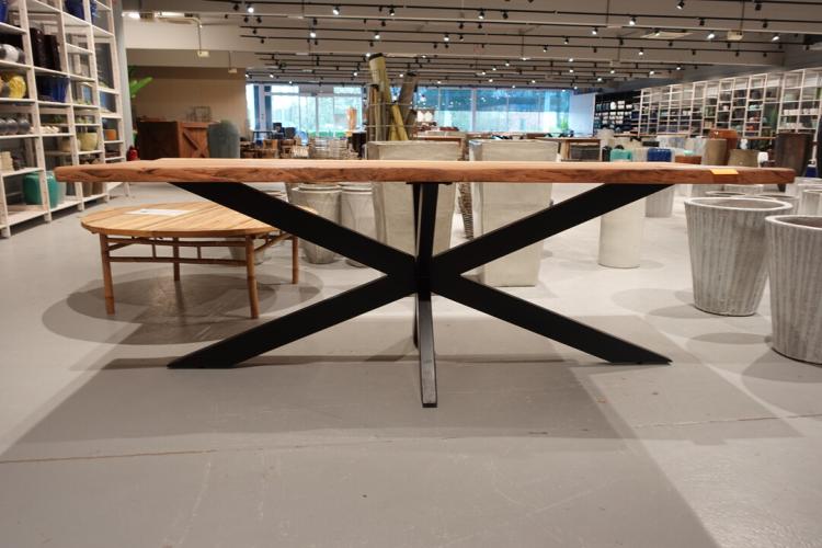oude teak, vv: metalen spiderpoot, 2200x950x800