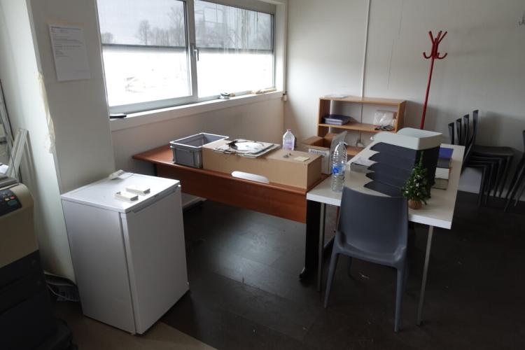 oa. diverse tafels, diverse stoelen, koelkast, diverse monitors, ..., (excl. printer Hp)