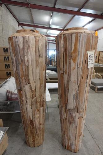 2x Hoge vaas teak