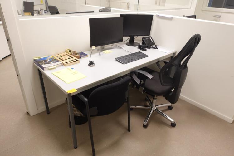 Bureau, 2x stoel, computer en schermen