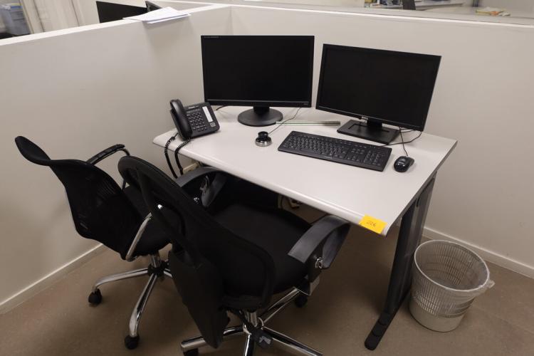 Bureau, 2x stoel, computer en schermen