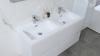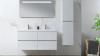 Badkamermeubel 120 cm - Hoogglans wit + witte dubbele wasbak - Incl. kranen