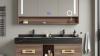 Badkamermeubel 2-persoons - 150 cm - Hout decor met zwarte marmeren wasbak - Incl. kranen