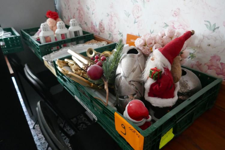 Kerstversiering - kaders - cupecakestandaard - spiegels- plastieken bloemen - kaarsenlantaarns - kroonluchters enz…