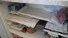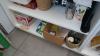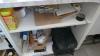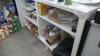 Houten toonbank witte kleur + inhoud : verpakkingsmateriaal en dergelijken
