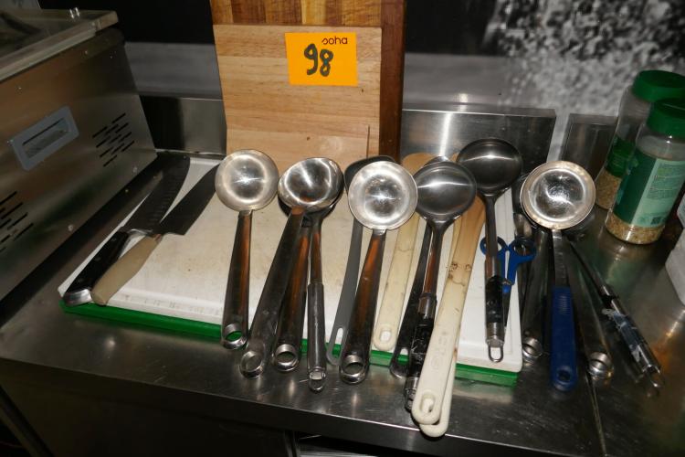 Potlepels - keukenmessen - spatels - snijplanken - borden - inox schalen - gastronormbakken - glazen - grijpers - kloppers - enz….