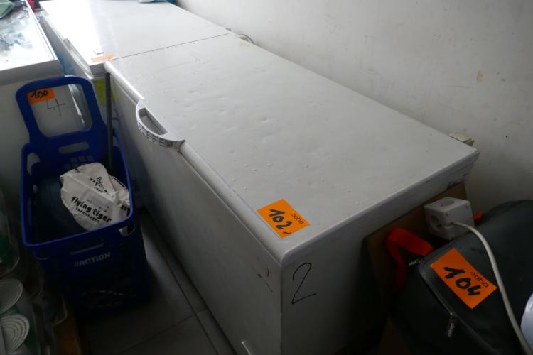 Vrieskist met deksel witte kleur + inhoud : bevroren voedingswaren (graag te bezichtigen )