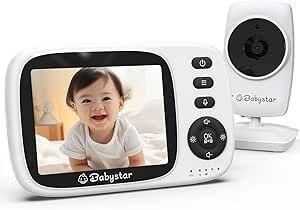 Ongebruikt, getest en werkend, compleet, Babystar babyfoon met camera, 3,2 inch scherm, babyfoon zonder wifi, tweewegsaudio, 2100 mAh batterij, 4 slaapliedjes, VOX-modus, nachtzicht, temperatuursensor, B0FPCZDDS7