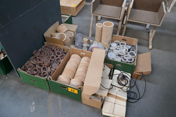 Allerhande diverse houten onderdelen voor het maken van designverlichting en armaturen