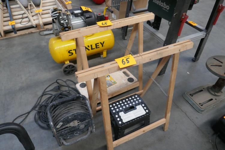 2 houten schragen - verhuiskar - opkrikje - verlengkabel - verlengkabel op haspel