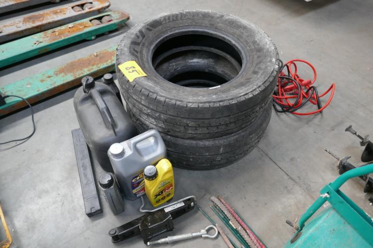 2 gebruikte autobanden - driehoek - startkabels - schaarkrik - jerrykan - enz...