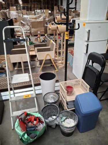 Trapladder - kapstok - papiermanden - papierbakken - vintage koffers - herfstkrans - staaflampen - enz…