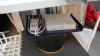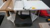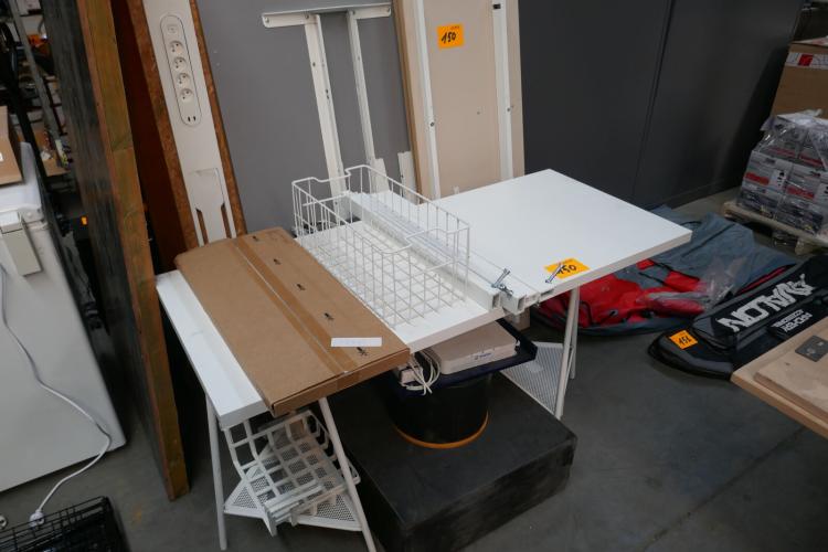 Gedemonteerde bureautafels met ingebouwde stopcontacten en rooter