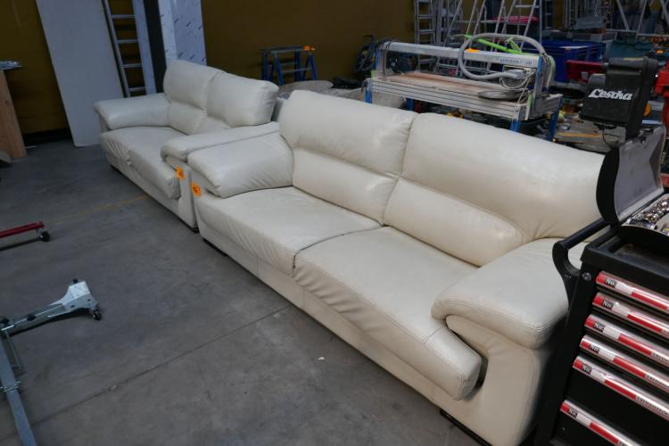 2 witlederen zetels waaronder 3-zit en 2-zit zetel (eens mooi op te poetsen )