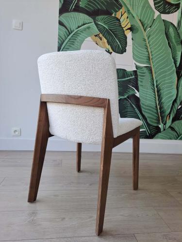 Ongeopende verpakking, 4 stuks stoel walnootkleur met beige zitting