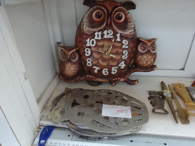 uilenklok + 2 onderzetuilen voor op tafel