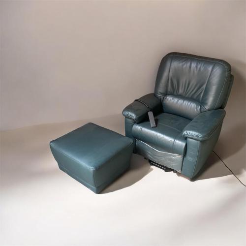 LEDEREN RELAX met uitstapfunctie + Lederen VOETBANK - Groen